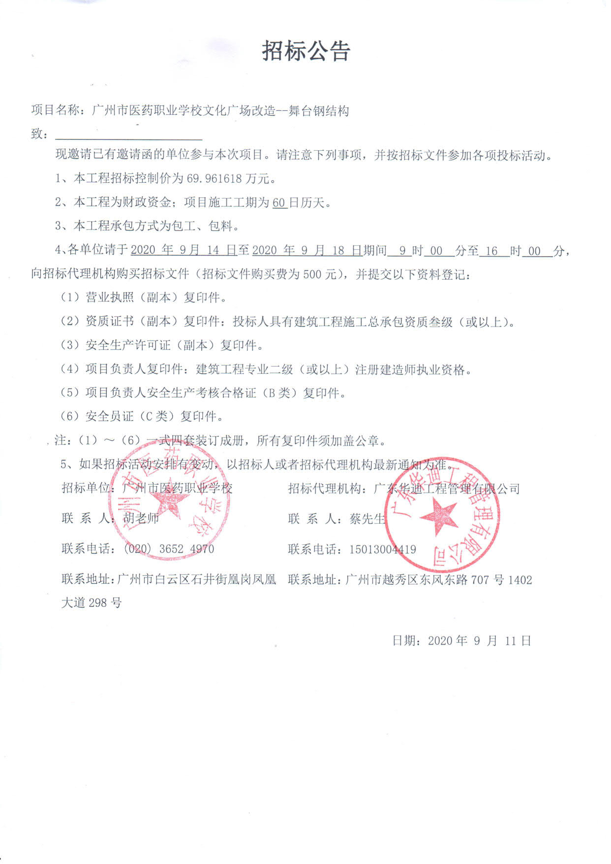 招標(biāo)單位:廣州市醫(yī)藥職業(yè)學(xué)校 | 招標(biāo)代理機構(gòu):廣東華迪工程管理有限公司 |